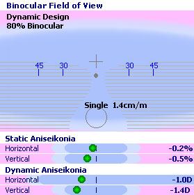Note how all aniseikonia values are improved over conventional designs, and how they all fall well within the patient’s measured vergence facility.