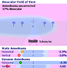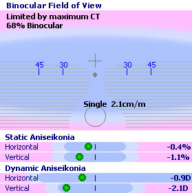The area of binocular vision is almost twice as large as that of conventional lenses. In addition, both static and dynamic aniseikonia values fall well within the patient’s facility. This will result in significantly less distortion and dramatically improved depth perception.